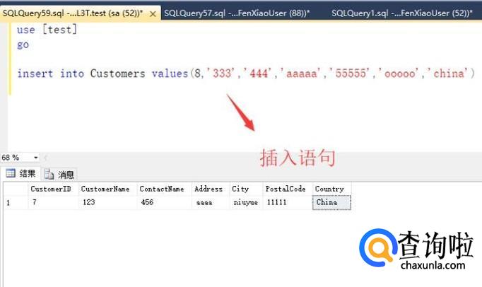 接下来是insert语句,insert被用来进行数据插入,运用它的时候一定注意插入的字段顺序,如下图所示
