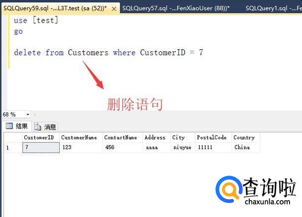 最后是delete语句,delete被用来删除表中的数据,进行删除操作的时候也要注意指定删除条件,如下图所示