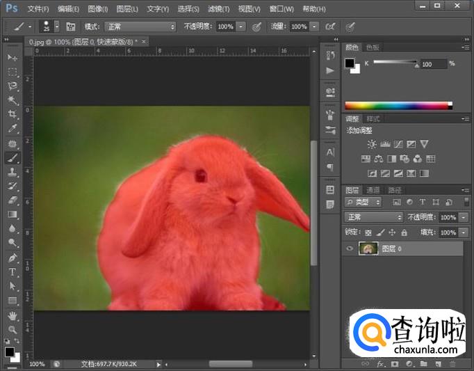 打开图片之后再在工具箱内找到快速蒙版选项,如图所示: