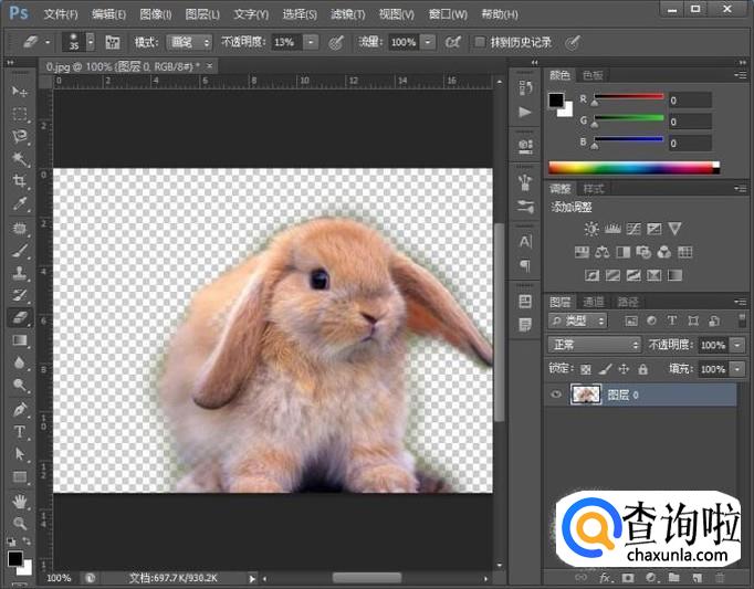 设置好之后我们按下delete键将背景删除,此时我们就得到了抠图后的效果了,如图所示: