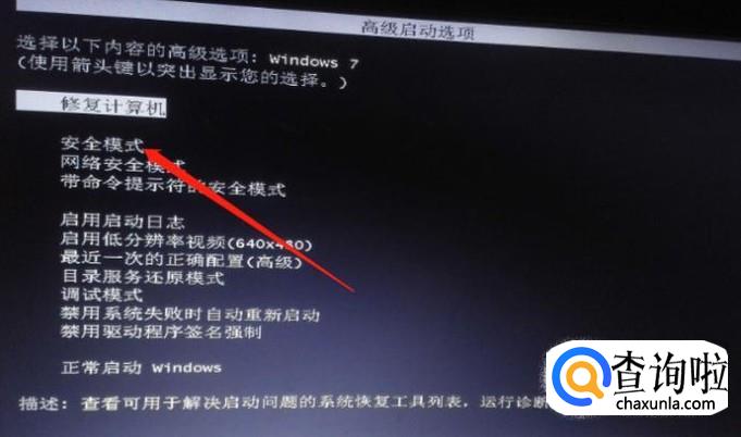 你也可以在“高级选项”菜单出来后选择“安全模式”,然后回车,再点击“退出”,再点击重启电脑就可以了。