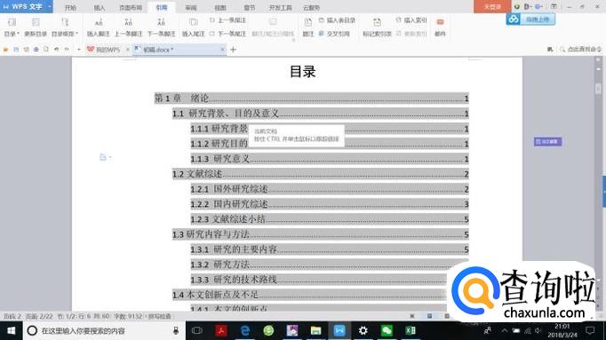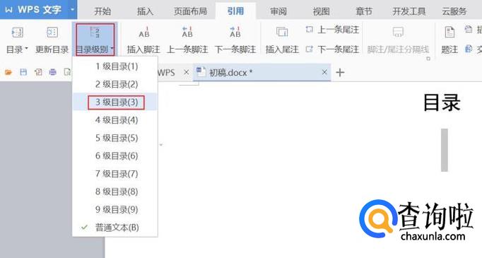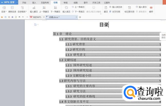 点击“引用”,可以看到左边有“目录”、“更新目录”、“目录级别”按钮。