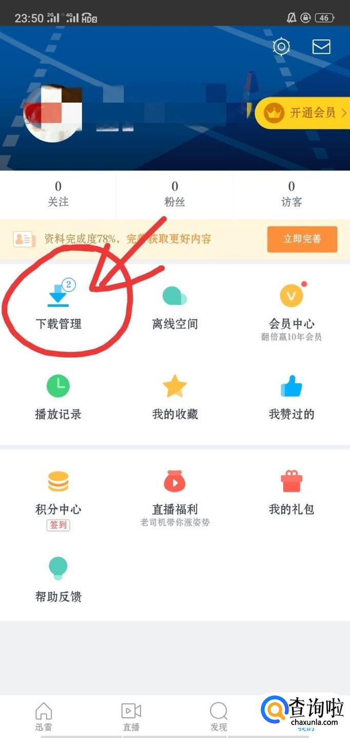 然后进入app,点击未登录或我的。点击下载管理,查看下载好的视频文件。