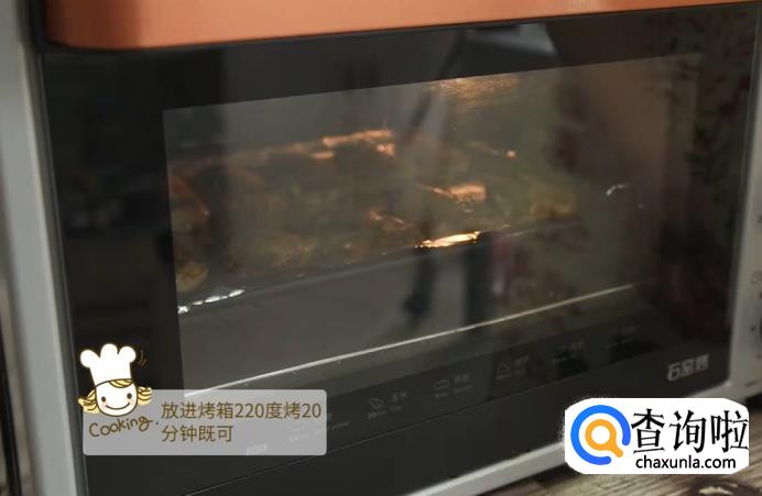 然后,将烤盘放进烤箱中,温度设置为220度,烤20分钟。