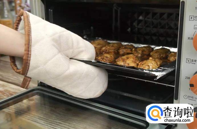 时间到了之后,用隔热手套将烤盘取出。