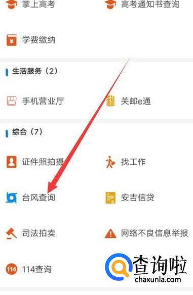 进入之后,点击“台风查询”,进入下一页面,如图所示。
