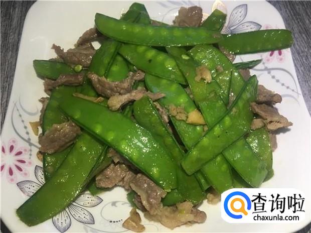 把荷兰豆炒两分钟,变颜色后,即可倒入腌制好的牛肉,牛肉不要炒太久,炒太久就不嫩了。倒入牛肉后,加入适量的盐,大火翻炒5分钟,即可关火。