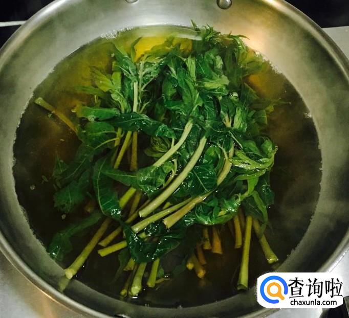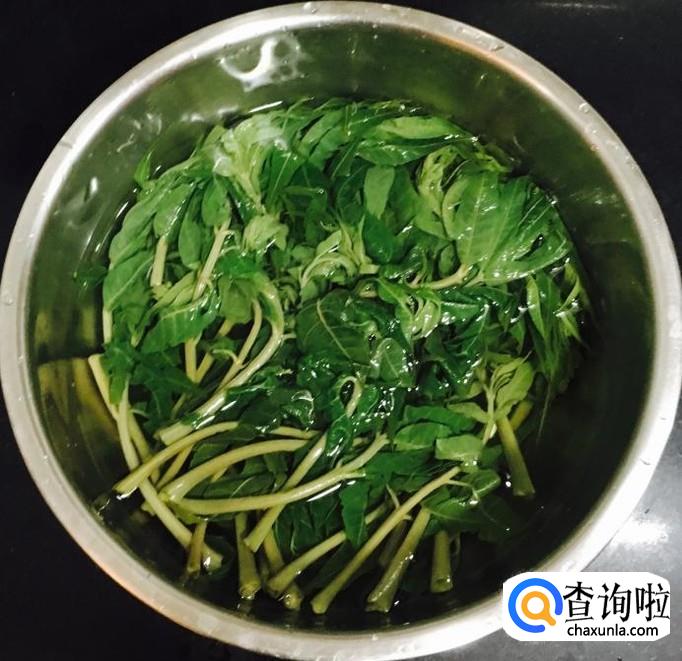 捞出焯过水的香椿反复过凉水