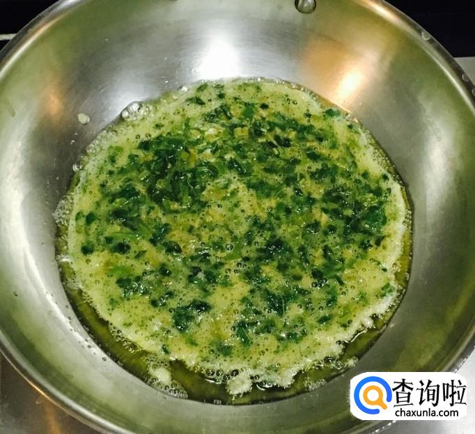 热锅加入适量的花生油倒入蛋液先不要翻动