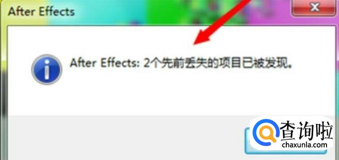 找到那个你要的素材,打开之后,AE会显示:先前丢失项目已被发现。