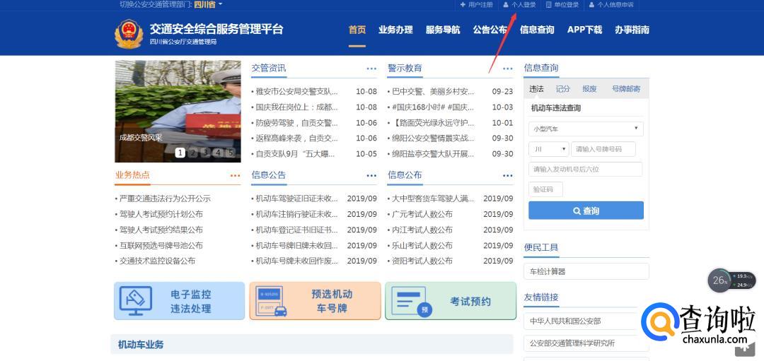 点击网页上方的个人登录按钮。
