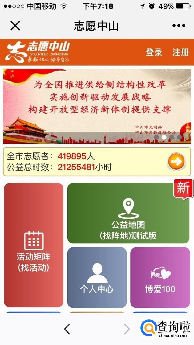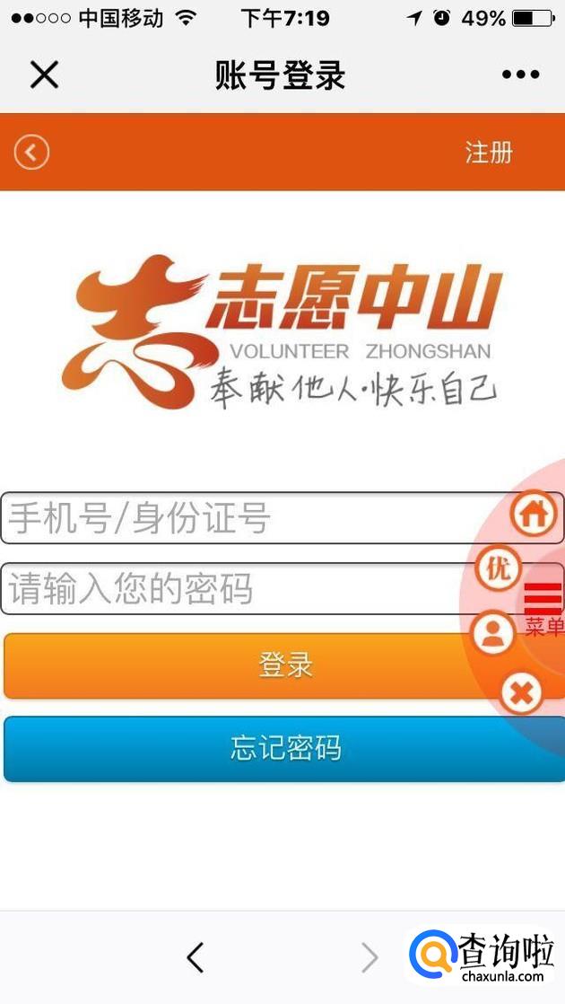 最后我们输入自己的账号和密码(如果没有可以直接注册),然后,我们就可以顺利参加中山志愿者活动。
