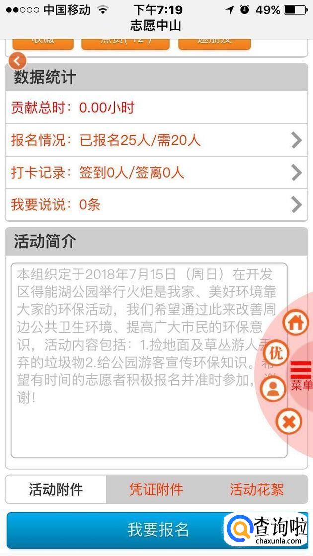 我们选好自己想要参加的志愿活动后,在页面的最下方点击“我要报名”。