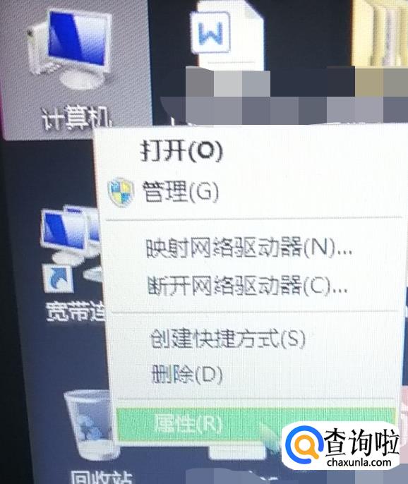 在计算机上选择我的电脑,右键单击,出现菜单栏,选择属性。