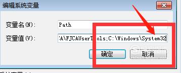 在“编辑系统变量”对话框中,找到变量值框,在它的最后面加一个分号“;”然后输入“system32”。