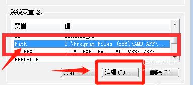 在系统变量中找到找到path项,然后点击“编辑”。