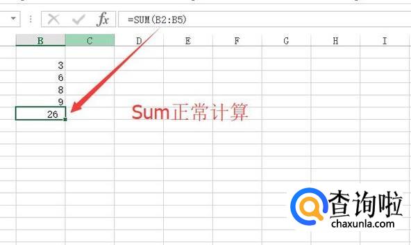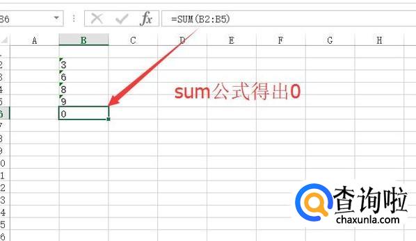 接下来我们给数字列运用SUM公式求和,你会发现得出的结果为0,如下图所示