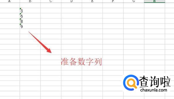 首先我们Excel,准备一个数字列,大家注意数字单元格的左上角为三角号,这代表单元格是文本数字,如下图所示
