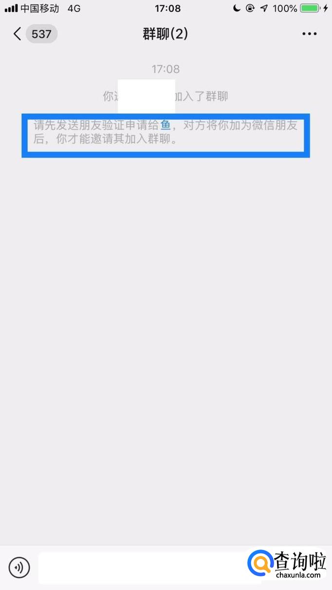 群聊创建成功后,有好友没有加入我们的群聊并且显示需要验证的,那么说明对方已经把我们删除了。