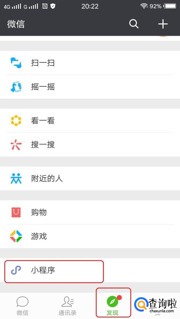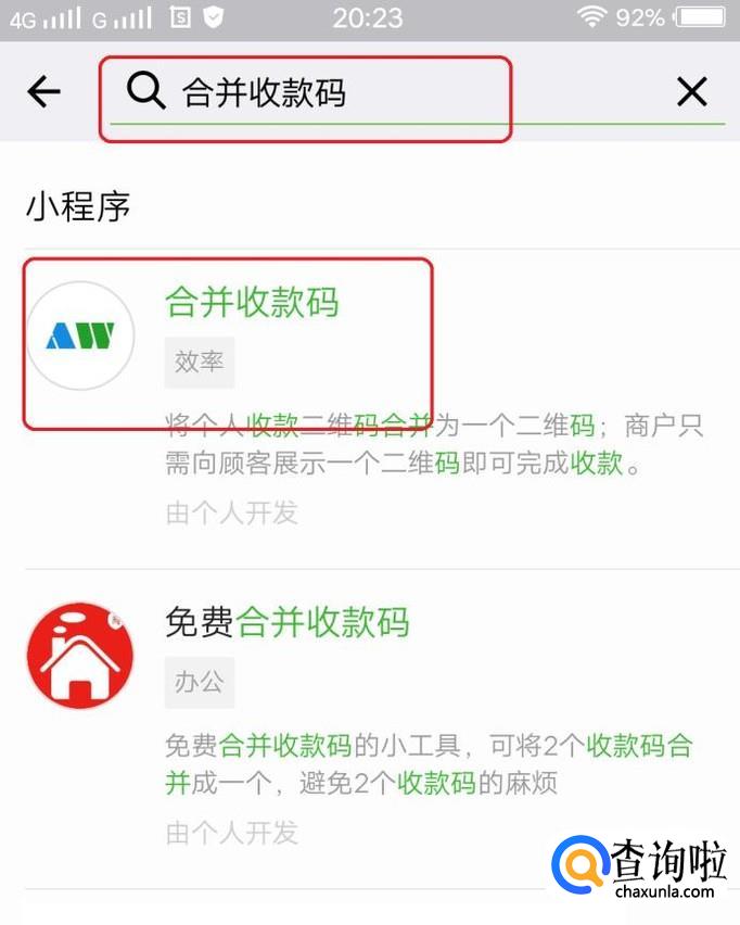 我们打开微信,点击“发现”,“小程序”,然后搜索“合并二维码”小程序。