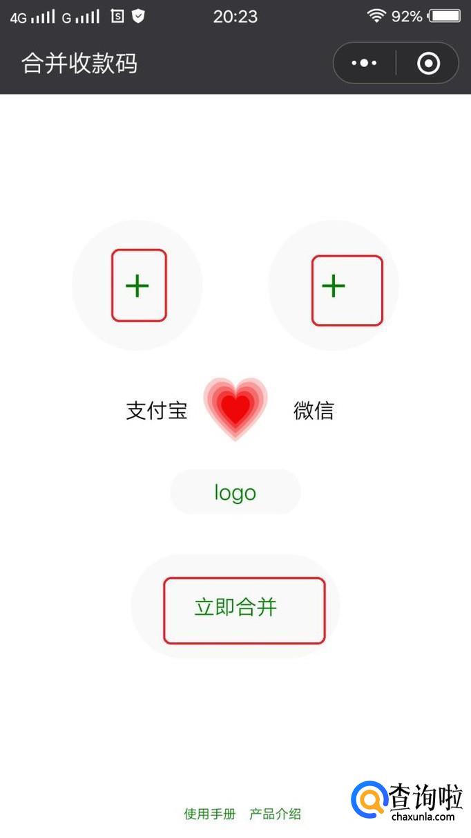 搜到小程序后,我们点击进入,此时,就可以分别添加支付宝和微信的收款二维码,我们只需要点击“立即合并”就可以生成一个合并后的二维码了。