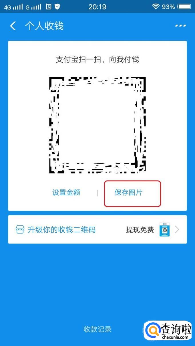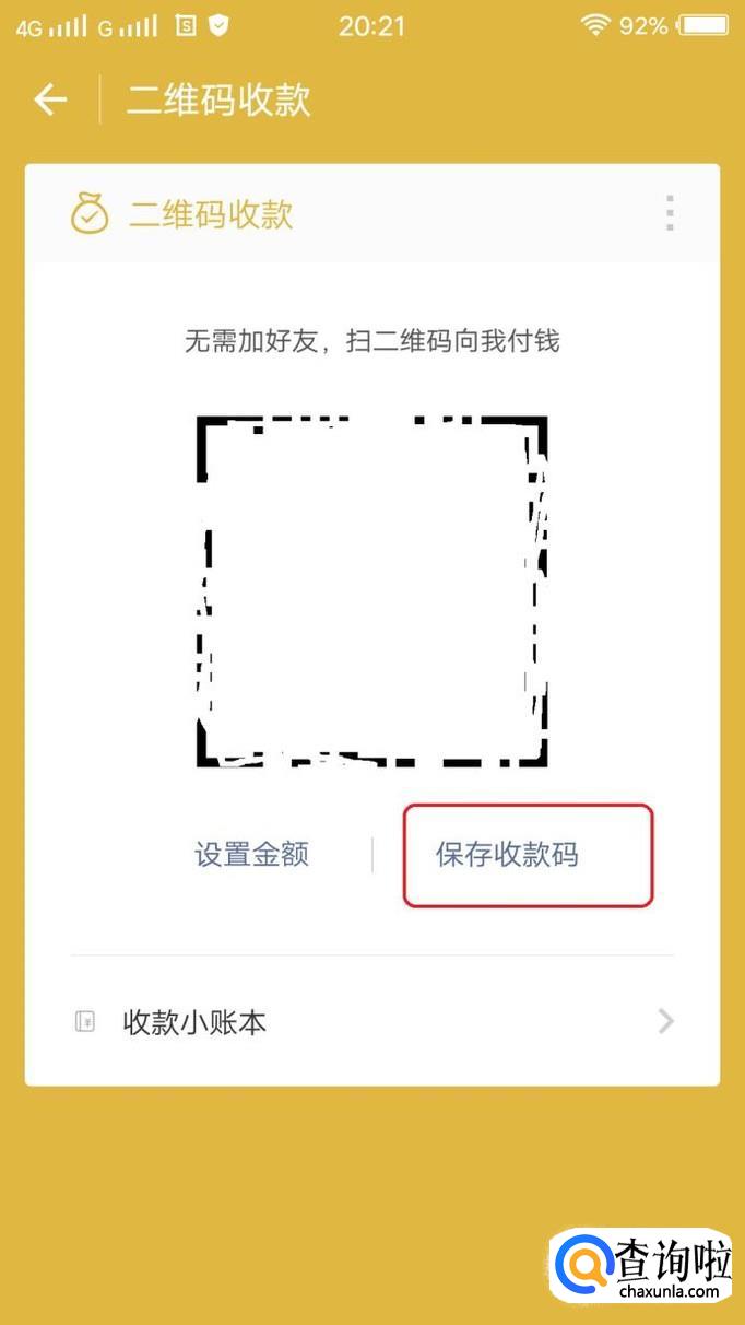 同理,我们调出微信的收款码,进入微信钱包,点击“收付款”,“二维码收款”,就能看到二维码了,我们点击“保存收款码”。