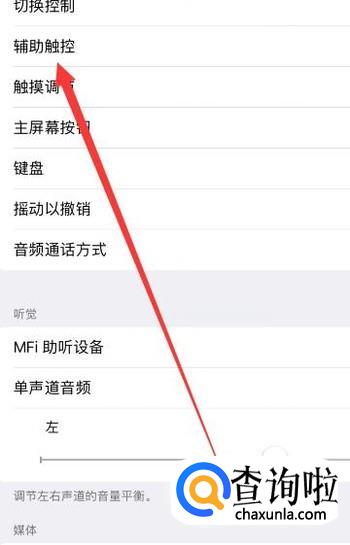 进入之后,选择“辅助触控”,进入下一页面,如图所示。