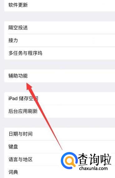 进入之后,选择“辅助功能”,进入下一页面,如图所示。