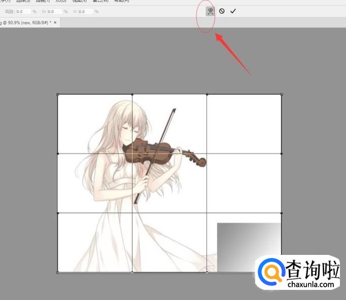 选择 编辑>自由变换,快捷键 CTRL T,点击工具栏中如下图所示图标,出现九宫格