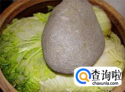 十分钟后,缸里加上清水,不要很满,不然过些日子白菜下来水之后就流出来了,然后用大石头压住,盖上盖子就可以了。注意不要使用酸菜精,对健康不好的。