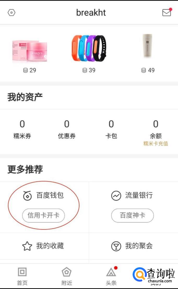 点击登录----我的糯米-----我的余额