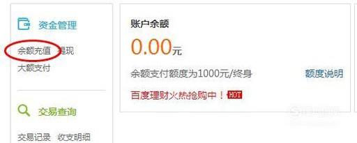 点击百度钱包余额------点击资金管理中的“余额充值”