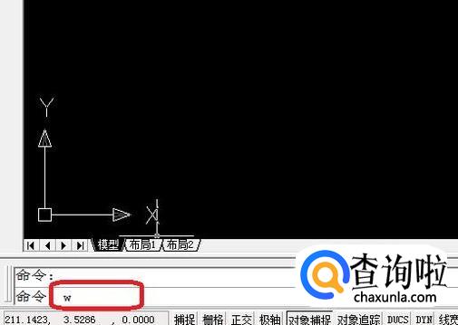 下方命令栏输入“W”,回车,调出“写块”面板。