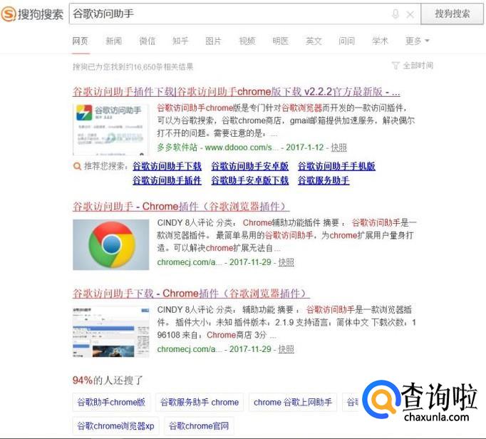 然后搜狗搜索谷歌访问助手,点击网页,然后进去下