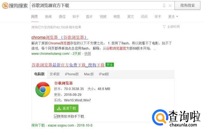 通过搜狗搜索谷歌浏览器,然后进行下载安装