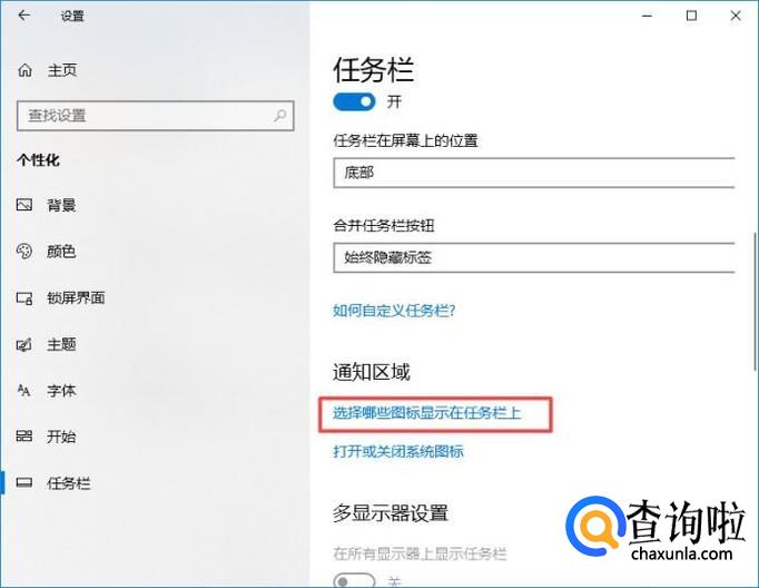 弹出的界面,我们点击选择哪些图标显示在任务栏上;