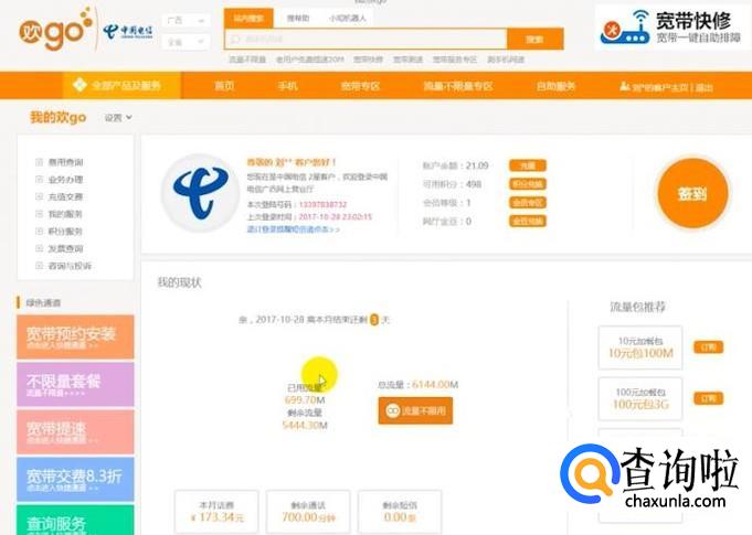登录后即可在页面上方看到话费余额以及本月消费等等。