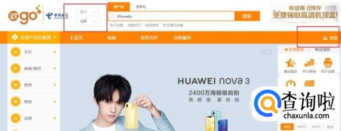 直接搜索中国电信官网,进入后选择所在地区并登录,输入自己的手机号码以及密码。