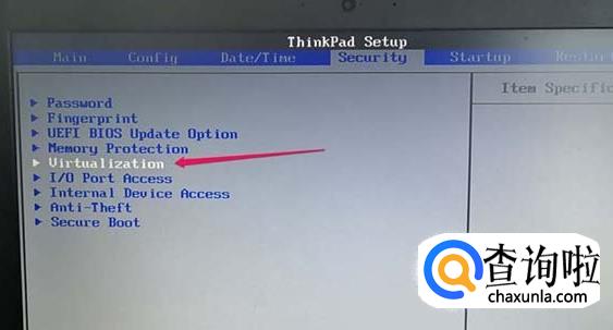 进入BIOS界面后,用键盘的方向键切换到“Security”选项卡,如下图所示。