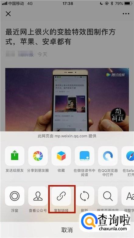 首先点击公众号中一个带有视频的文章,并点击屏幕右上方的三个点,如下图所示。