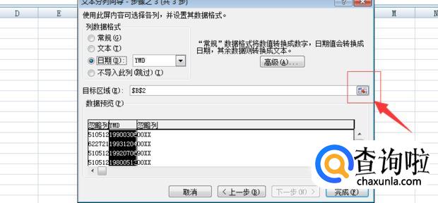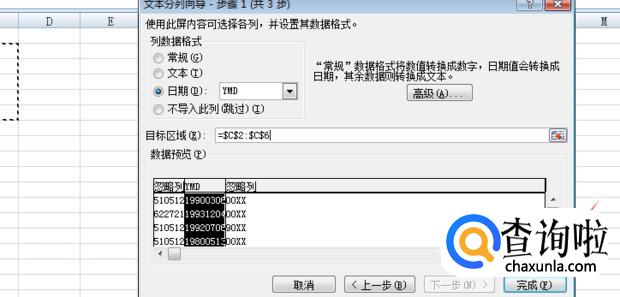 在弹出来的文本分列向导中点击完成。界面中选择的出生日期区域便会被自动填写。
