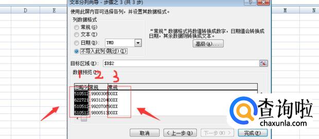 单击图示中标出来的1、3,分别选择“不导入此列(跳过)”。