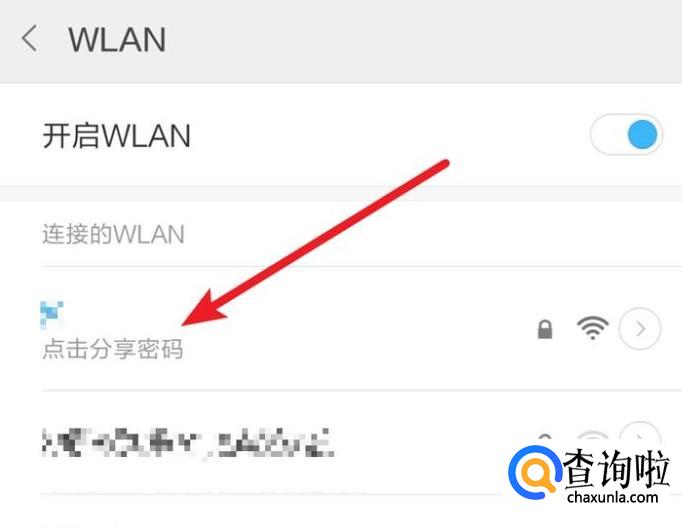 首先我们在wlan上,点击分享密码。