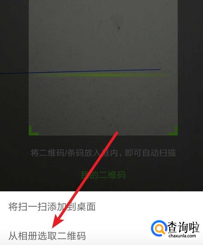 然后打开微信的‘扫一扫’功能,点击‘从相册选取二维码’
