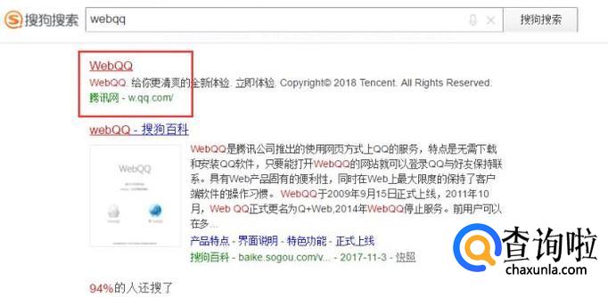 通过搜索工具检索“webqq”,选择靠谱的搜索结果点击进入。