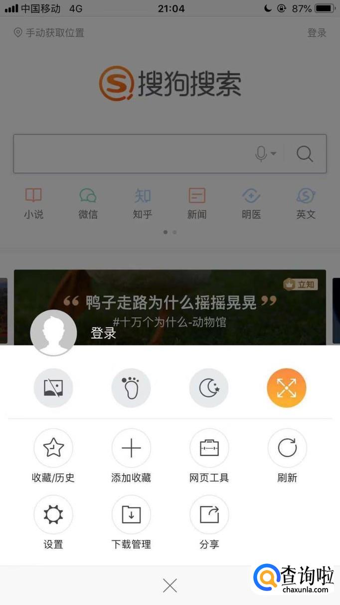 然后点击打开一个网页并点击屏幕右下方的三条横杆,如下图所示。