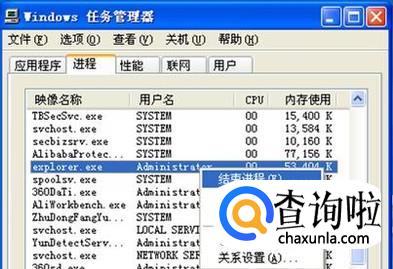 先点一下上面的“进程”,然后在里面找到“explorer.exe”,在上面右键单击,在弹出的对话框里点“结束进程”。如果进程里没有“explorer.exe”就直接进行下一步。