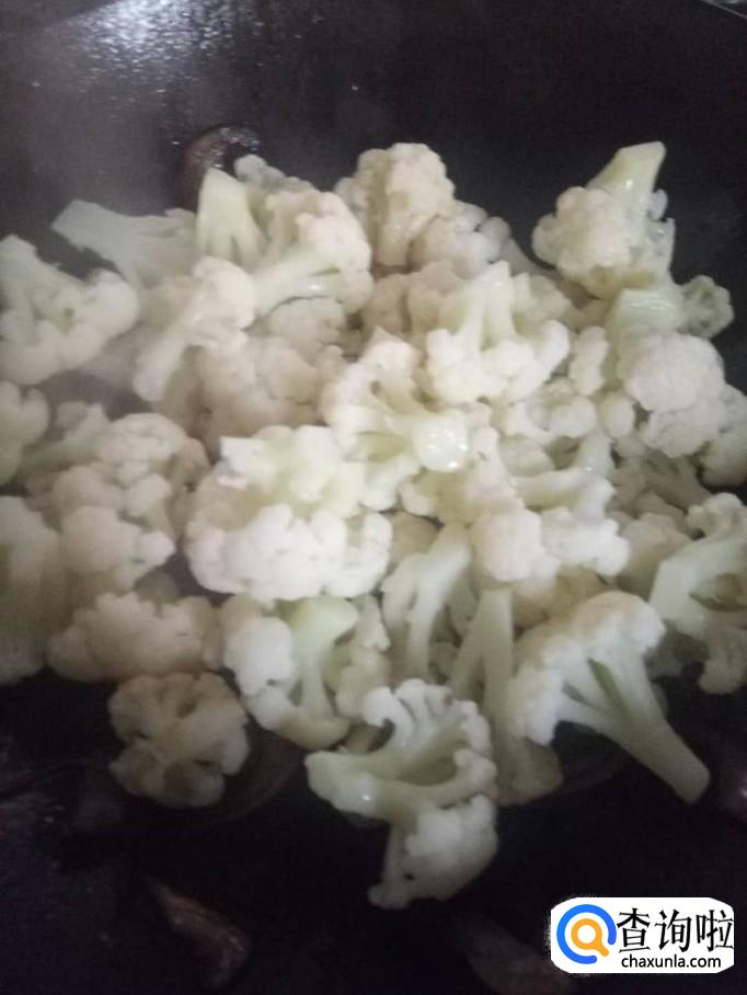 倒入菜花,进行大火快速翻炒。