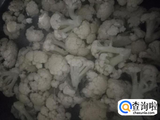 锅里放水烧开,倒入菜花,焯一下。