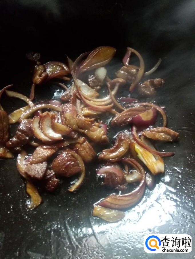 之后放入洋葱丝和少量生抽,煸出香味。